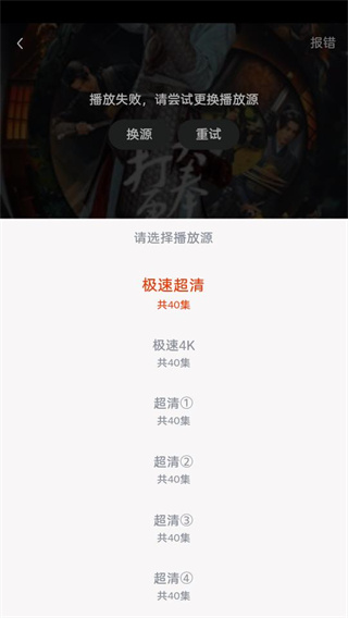 我們能夠挑選自己鐘愛的電視劇觀看,要是遇到播放失敗的情況,還可以選擇更換播放源。