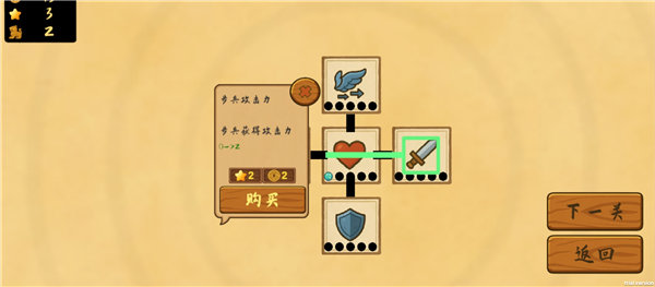 1、進入關卡內,可以看見三個挑戰(zhàn),完成即可三星通關。