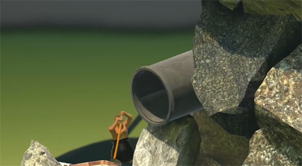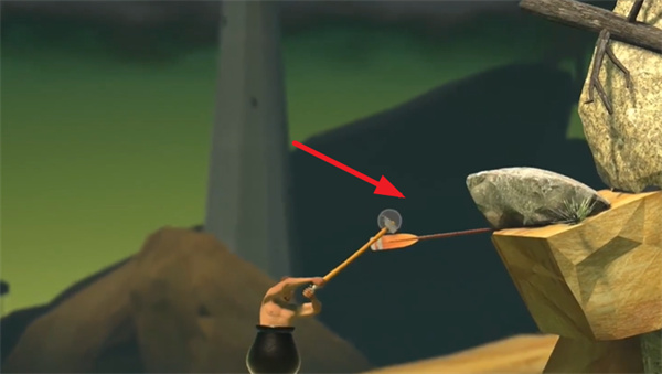 然后繼續前行,前方有一個大石頭,需要勾住。