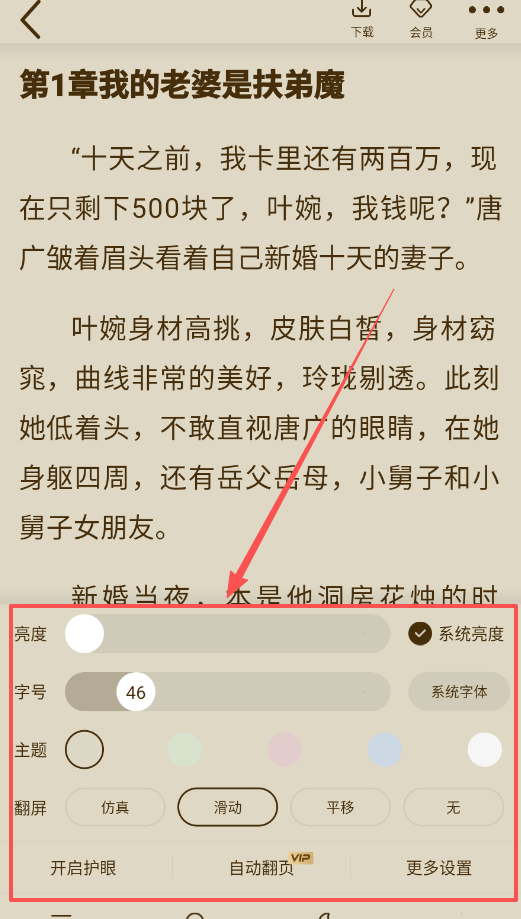 進入閱讀界面后,你可以通過屏幕下方的菜單來調整亮度和字體大小,這里提供了46級字號可供選擇,一定能找到讓你感覺舒適的尺寸。