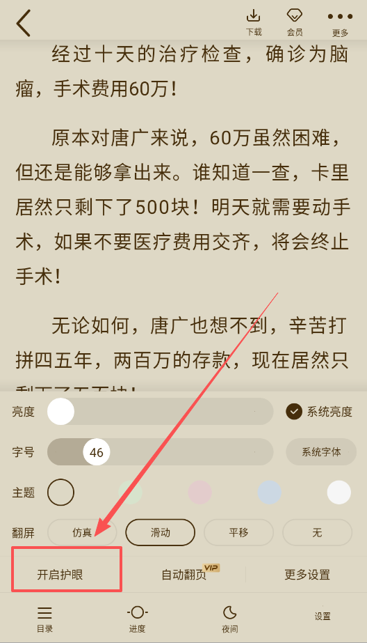 在更多設置里,建議開啟護眼模式與自動翻頁功能,如此一來既能呵護雙眼,又可解放雙手,進而獲得沉浸式的閱讀體驗。