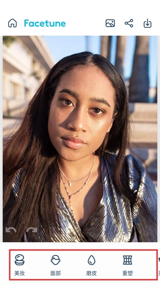 在【Facetune】的照片樣例頁面挑選一張圖片,即可進入編輯界面,著手調整照片的各類效果。