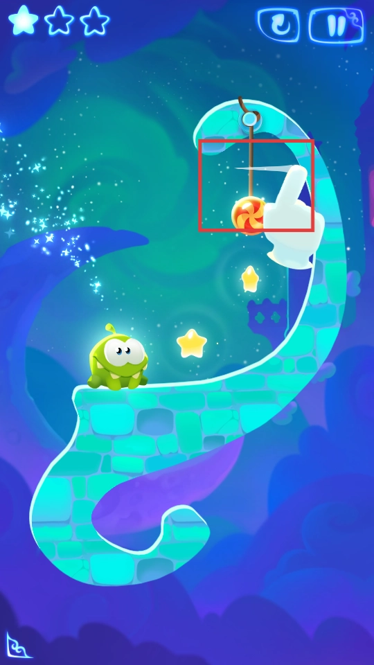 利用下落的糖果,協(xié)助角色收集場(chǎng)景中的星星。