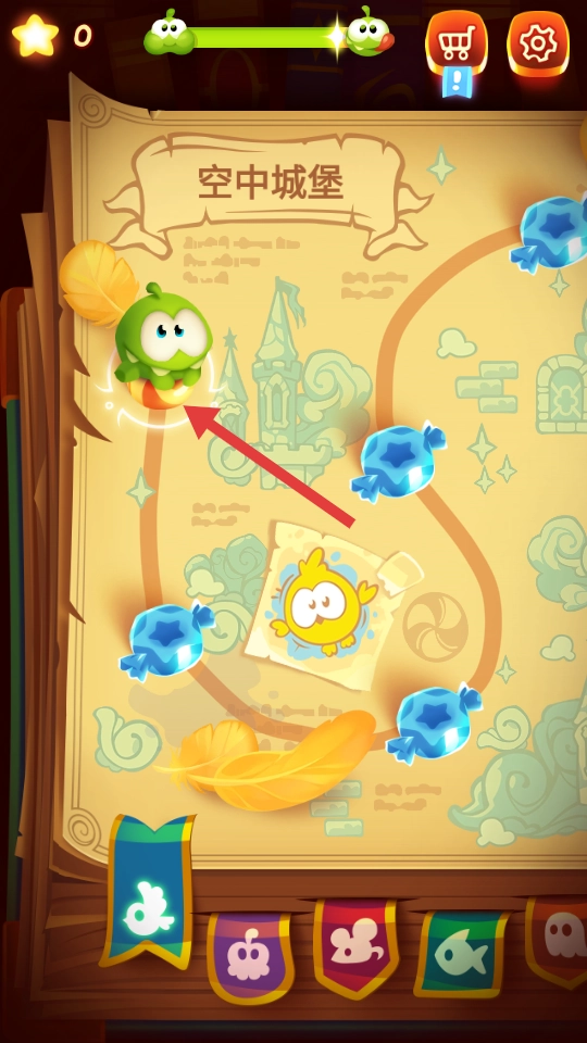 觀察關(guān)卡內(nèi)懸掛的糖果,切斷其繩子使其下落。