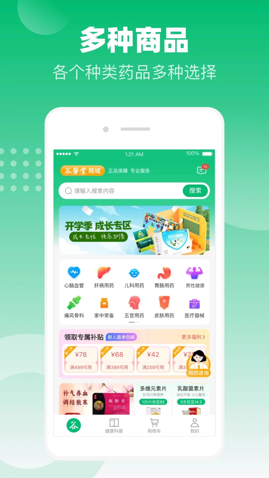 全方位的健康守護:谷醫堂商城除了供應各類健康產品外,還融合了專業的健康咨詢與個性化的健康管理服務,致力于為用戶打造一站式的健康管理解決方案。