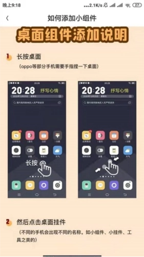 然后,我們再點擊桌面掛件(不同手機的這個位置可能存在差異,有的手機稱之為小組件,有的叫小佳件,還有的則命名為工具之類的名稱)。