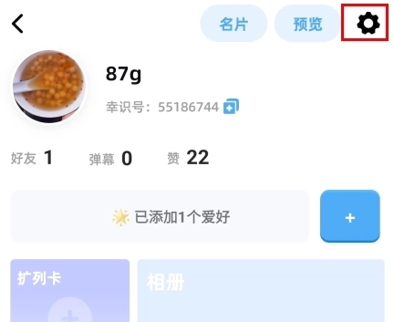 在個人頁面中點擊右上角的設(shè)置按鈕;