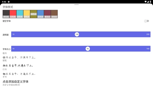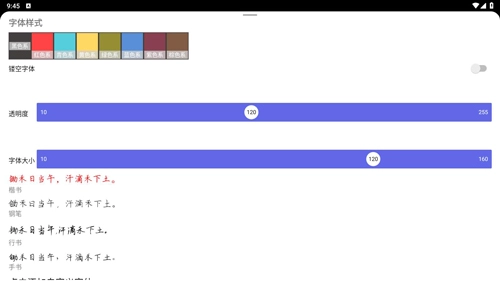 豐富的個性化設置選項:你能夠自定義字帖格子的顏色和透明度,還可以自定義字體的顏色、大小以及透明度。
