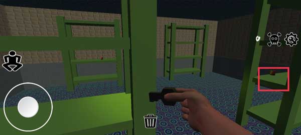 出去之后你會打開一扇橙色的門,里面有一把槍和幾枚子彈,可用來提升自身的整體實(shí)力。