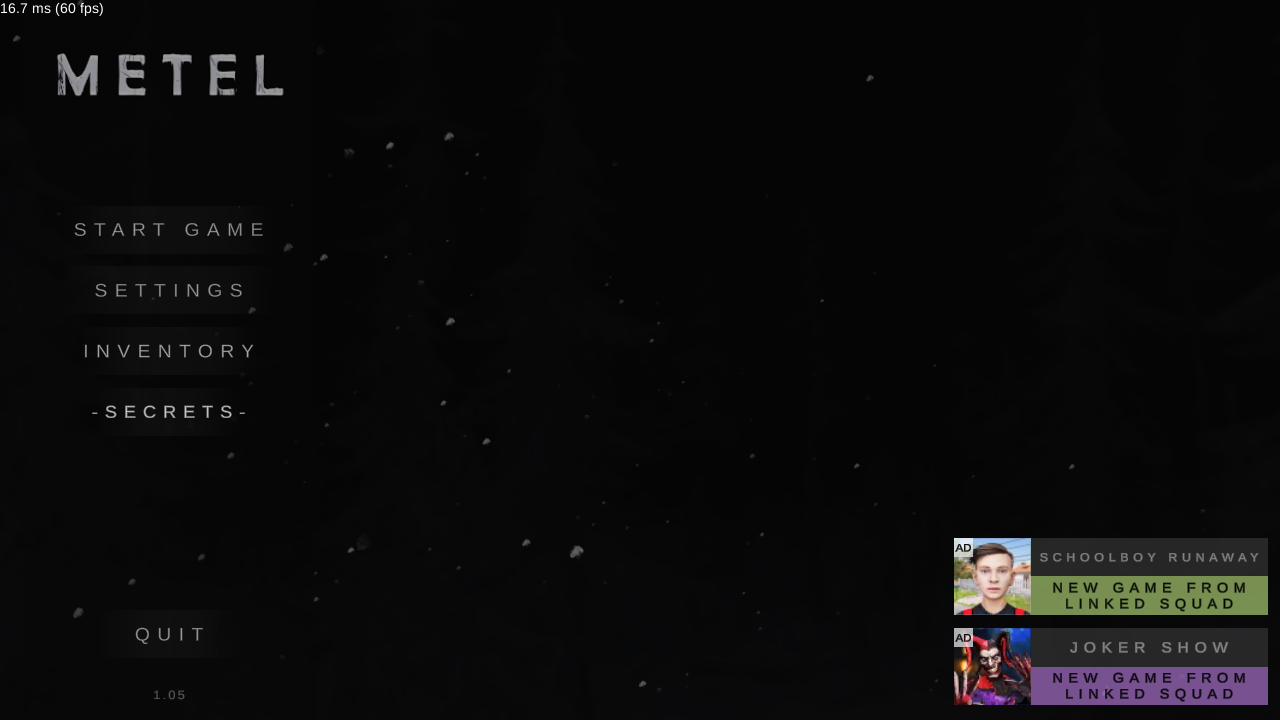 接下來,我們就能看到十分清晰的游戲主界面,上面包含了start game、settings、inventory、secrets等選項,我們選擇start game。