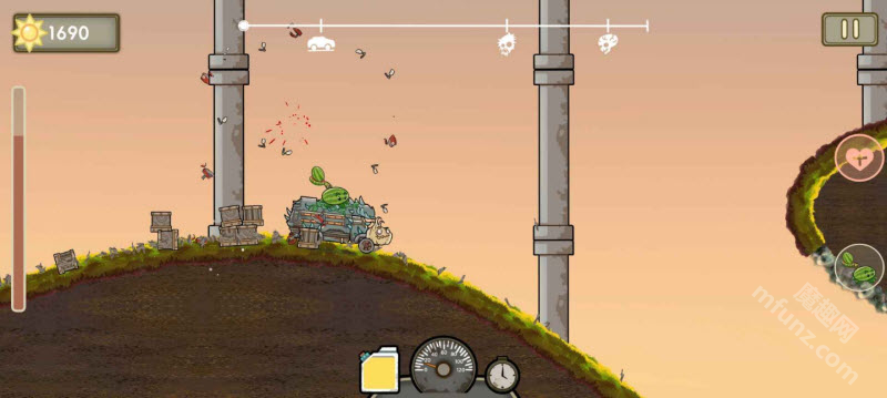 死亡戰(zhàn)車與PVZ雙玩法融合:駕駛可升級(jí)戰(zhàn)車橫沖直撞碾壓僵尸,漂移過彎和擊殺僵尸都會(huì)掉落陽光,戰(zhàn)斗節(jié)奏酣暢淋漓
