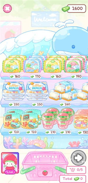 可以直接進入便利店,店里陳列著琳瑯滿目的商品,挑選好商品后就能添加到購物車,總共需要選購五件商品。