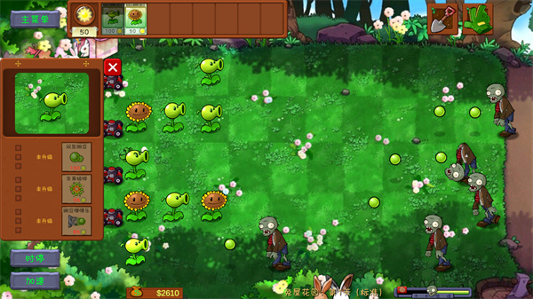 游戲里的植物種類格外豐富,像豌豆射手、櫻桃炸彈之類的都是主要成員,而且種起來都很輕松。