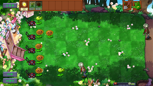 你還可以利用右上角的鏟子來清除多余的植物,只要把所有僵尸都消滅就能順利通關。