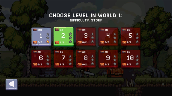 點擊綠色按鈕后你可以選擇不同的世界和關卡來游玩。