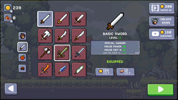 通關后會獲得金幣獎勵,金幣可用于解鎖新的武器與投擲物,也能用來對裝備和角色進行升級。