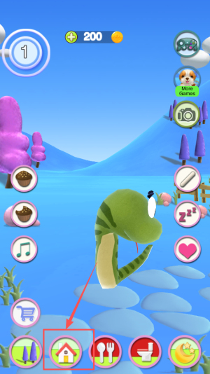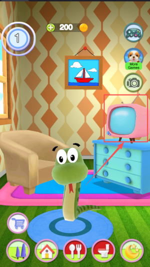 然后點擊圖中各種圖標與小蛇互動如電視機。