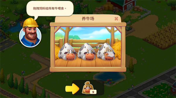 再去喂一下牛,點擊牛棚,直接將飼料給牛吃就成。
