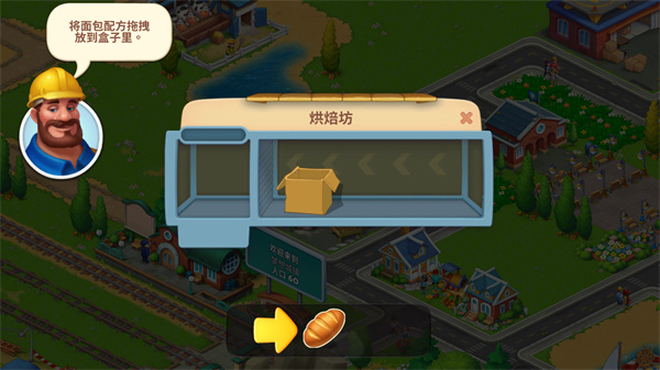 花費金幣解鎖烘培廠,再將面包配方拖動到盒子中。