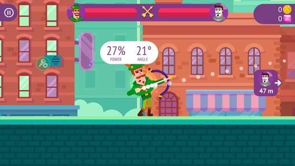 右邊會顯示距離提示,你可以依據射擊的弧度與力度,來射中另一邊的人。